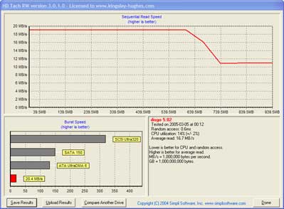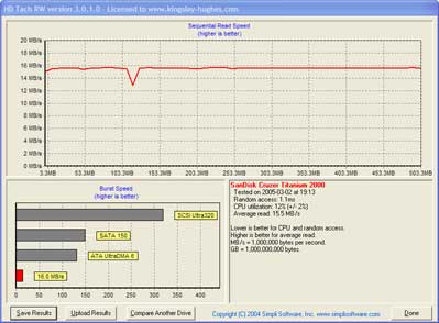For the tests I used HD Tach RW version 3.0.1.0 from Simpli Software, Inc. This give a good indication of the read speed that users can expect when accessing the device.