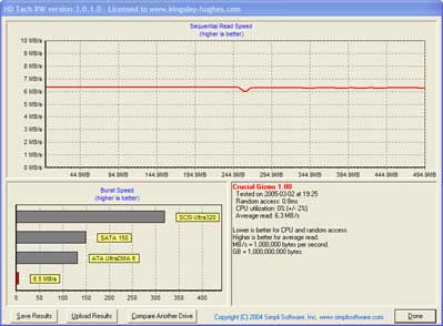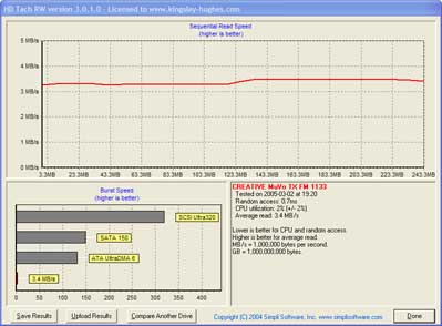 For the tests I used HD Tach RW version 3.0.1.0 from Simpli Software, Inc. This give a good indication of the read speed that users can expect when accessing the device.
